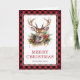 Red Plaid Watercolor Deer Merry Christmas Photo Holiday Card