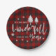 Red Plaid Wonderful Time Of Year Christmas Party Paper Plate