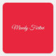 Red Plain Elegant Minimalist Calligraphy Square Sticker