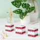 This design features red frangipani / plumeria flowers. A tropical design elegantly framed with red frangipani flowers and centred wording. The bride's and groom's names are emphasized with a fancy script typography.These popular tropical Hawaiian flowers are ideal for an elegant destination beach wedding. Tropical wedding favour box design with modern elements. Matching wedding invitations and other stationery items are also available.