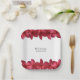 This design features red frangipani / plumeria flowers. A tropical design elegantly framed with red frangipani flowers and centred wording. The bride's and groom's names are emphasized with a fancy script typography. These popular tropical Hawaiian flowers are ideal for an elegant destination beach wedding. Tropical wedding paper plate design with modern elements. Matching wedding invitations and other stationery items are also available.