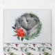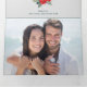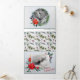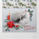 A pretty watercolor red poinsettia, berry, and green leaf frame holds your own photograph on the cover of this trifold Christmas card. The background is silver, and the text "JOYFUL & BLESSED" is in red brush script. The inside has two more photo templates, and the middle holds your custom text in teal green. The back has one more photo template within an oval poinsettia frame, and a pretty holly and berry pattern. A beautiful way to greet friends and family over the Holiday Season!