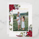 Merry Christmas! Send your holiday wishes and greetings to family and friends with this customisable gold foil Christmas card. It features watercolor frame of pinecones, pine needles, hollies, berries and red poinsettias. Personalise this floral Christmas card by adding names, message and photo. This watercolor Christmas card is available in other foil colours and cardstock.