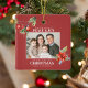 Red Poinsettia Christmas Family Photo Ceramic Ornament