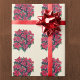 This Christmas wrapping paper shows bundles of watercolor red poinsettias on an off white background. These are classic Christmas flowers showing both the flowers and the green leaves. If you want a different background colour, it's easy to customise in the Edit This Design button.