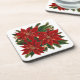 Holiday coasters with red poinsettias and greenery.