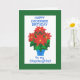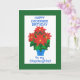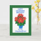 A colourful Birthday Card for a stepdaughter who has a birthday in December, with a bright red poinsettia, the December Birth Month flower. The design is from a hand-painted paper collage by Judy Adamson and you can change change the inside message if you wish.