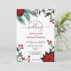 Red Poinsettia Floral Christmas Watercolor Wedding Invitation