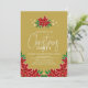 Share the joy and invite your friends and loved ones to your Christmas celebration with this elegant gold with white text poinsettia floral Christmas party invitation.