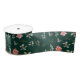 This elegant and festive ribbon is versatile and can be used for giving gifts or art and craft projects. It is perfect for Christmas and the holiday season. The design features watercolor red poinsettia flowers and foliage on a dark green background.