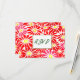 A festive red poinsettia allover holiday floral pattern on a custom RSVP invitation template with script letters.