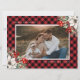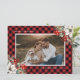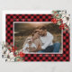 Celebrate the winter holidays with this red photo Christmas card featuring a watercolor painting of poinsettia, holly and red berries against a red buffalo plaid background. Easily personalize this holiday card with your photo and text.
