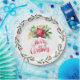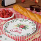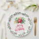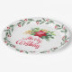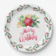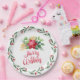 Beautiful paper plate featuring a Holly Wreath, red poinsettia and green and yellow leaves with a "Merry Christmas" script. Great idea for a Christmas party.