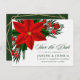 Red Poinsettia Pine Greenery Wedding Save The Date Postcard