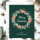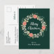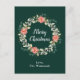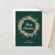 This fun and festive watercolor Christmas postcard can be personalised with a name or title. It features a watercolor Christmas wreath with red poinsettias and holly on a dark green background. The text combines handwritten script and modern serif fonts for an elegant and sophisticated look.