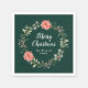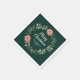 This fun and festive napkin features a wreath with red poinsettias and holly on a dark green background. The text combines handwritten script and serif fonts for an elegant and sophisticated look. This is perfect for holiday parties, brunches, dinner parties, open house and more.