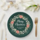 Red Poinsettia Wreath Merry Christmas Paper Plate