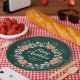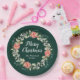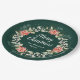 This fun and festive plate features a wreath with red poinsettias and holly on a dark green background. The text combines handwritten script and serif fonts for an elegant and sophisticated look. This is perfect for holiday parties, brunches, dinner parties, open house and more.