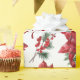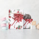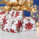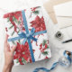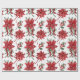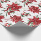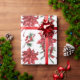 A watercolor-painted pattern of red poinsettia flowers with red ribbons and bows with pine greenery on a white background. This design has a clear background so that you may edit the colour in the Design Tool.