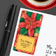 Red and gold poinsettias and leaves are a background for your return address in chic lettering. MATCHING items in our collection.