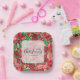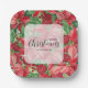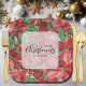 Personalised paper plates feature modern, elegant red poinsettias with Merry Christmas and your name in chic lettering. MATCHING items in our collection.