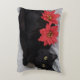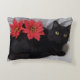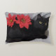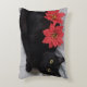 Red Poinsettias on Black Cat Photo Christmas Decorative Cushion
