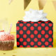 A wrapping paper built with a red polka dot pattern on a black background. Customise the black background in an easy way.