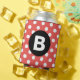 Red Polka Dot Pattern Black Monogram Can Cooler