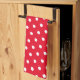 A stylish red and white tea towel, with a fun polka dot pattern. Personalise with the recipient's name, which will appear in red script typography on a white panel at one end of the towel.
