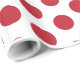 Red polka dots cover a white background. Paper is great for Christmas time or any time!