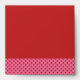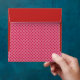 Big red dots on a pink background wrap around a red envelope. There are also big red dots on the inside.