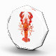 Picturesque, drawn with spots of red paint in polygonal style boiled, delicious lobster on white background.