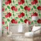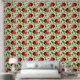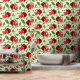 Red Pomegranate and Green Botanical on Cream Wallpaper