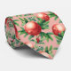 This is a pattern of vintage watercolor red pomegranate fruits with green leaves on a light peach background.