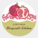 Red pomegranate "from my kitchen", "from the kitchen of" gift tags stickers or product or packaging labels for personal or private chefs, cooks, bakers and other cooking or baking business. Round raspberry whole and sliced red poms with round seeds.