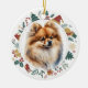 Red Pomeranian Dog Christmas Wreath Ceramic Tree Decoration