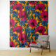 Red poppies and blue cornflowers on orange tapestry