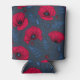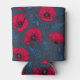 Red poppies and ladybugs on dark blue can cooler
