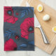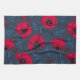 Red poppies and ladybugs on dark blue tea towel