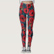 Red poppies and wrens, blue leaves on black leggings