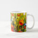 Red poppies flower field - Original handmade abstract oil painting bright flowers made palette knife. Yellow, blue, purple abstract flowers. Macro impasto painting.