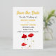 Modern, elegant, red poppies floral watercolor, QR Code, photo, gold foil, Wedding Save the Date. You can personalise it with your own details.