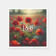 Pretty red oil painted poppies with the sun illuminating them. Red and green tones. Personalised paper napkins for the rehearsal dinner, wedding reception or bridal shower. Bride and groom initials and wedding date.
