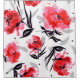 Blooming red poppies stand out against a stark white background with subtle grey stripes, forming a captivating floral pattern.