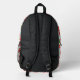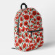 Backpack in a delicate pattern of vibrant red poppies with deep green stems and leaves, on a while background, with, each poppy bloom uniquely curved and twisted, as if swaying gently in the breeze.
