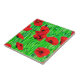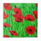 Ceramic tile in a semi-abstract, watercolor pattern of red poppies in a field, against green stems and leaves