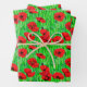 Wrapping Paper Sheets in a semi-abstract, watercolor pattern of red poppies in a field, against green stems and leaves