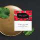 Chic, modern floral business cards with black and white stripes and red poppies.