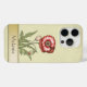 Cute red poppies illustration on personalizable phone case with warm colours and golden shaded ribbon with name or monogram.