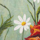Hand-painted red poppies and white daisies on a soft pastel gray-green background.
